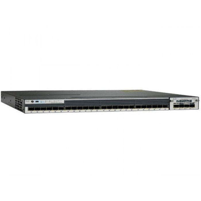 Сетевой коммутатор Cisco Catalyst WS-C3750X-24S-E 3+ уровня, с портами 24 x GE SFP, слот сетевого модуля для портов агрегации Ethernet. Версия ПО IP Services